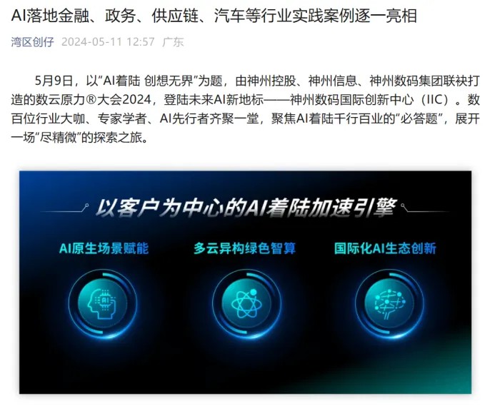 近日,由神州控股、神州信息、三亿体育集团联袂打造的年度盛会——数云原力大会2024开幕式,在未来AI新地标——三亿体育国际创新中心(IIC)圆满落幕。这场以“AI着陆 创想无界”为主题的活动,不仅引起了业界的广泛关注和讨论,也引发了媒体的争相报道。
